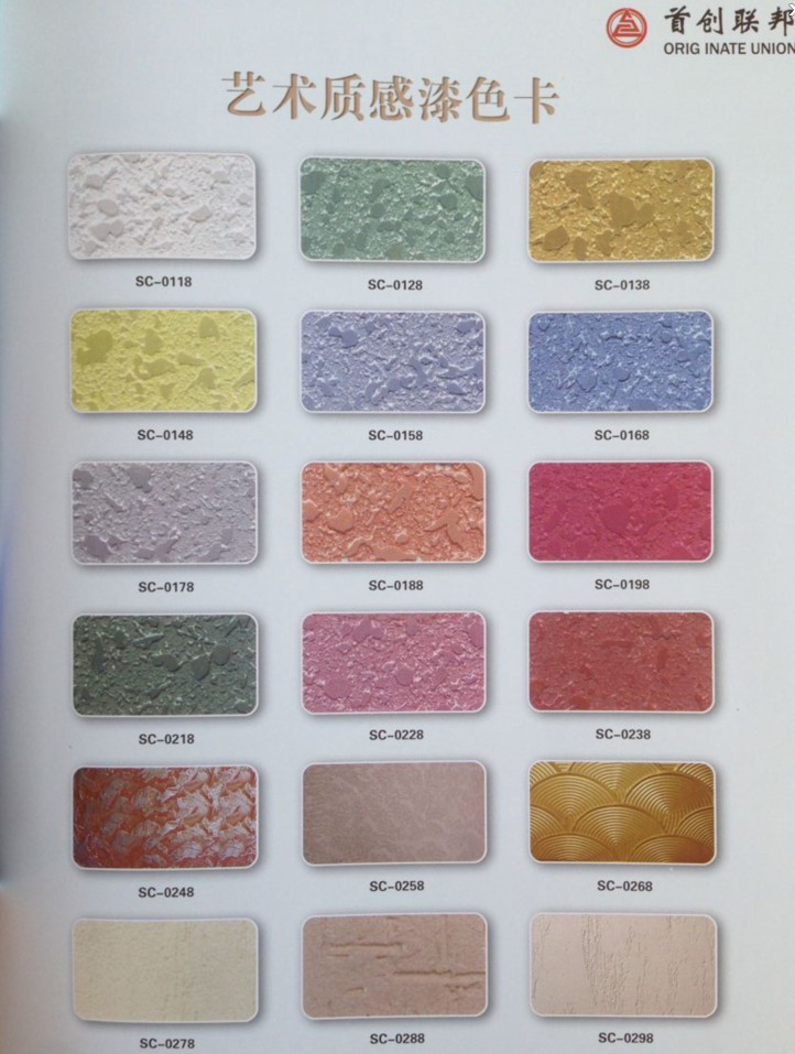 ●產(chǎn)品介紹 首創(chuàng)藝術(shù)質(zhì)感漆是由氟碳樹脂加超耐候金屬顏料、多功能進口助劑等制成高級裝飾漆。特有一定的藝術(shù)質(zhì)感,涂膜具有較長的壽命和抗紫外線功能,附著力強,硬度好、耐腐蝕性優(yōu),易清洗及施工簡便之優(yōu)點。它因極高性能、色彩多樣化、施工簡易而倍受歡迎。是賓館、家庭裝飾、電視墻、辦公場所的背景形象墻首選產(chǎn)品。●產(chǎn)品特點 1、是目前在國內(nèi)涂料產(chǎn)品行業(yè)領(lǐng)先的質(zhì)感涂料,有極佳的裝飾性。 2、優(yōu)異的抗堿性及卓越的耐候性。 3、涂層具有良好的防水透氣性能(如皮膚效果)。 4、具有自潔功能,優(yōu)異的殺菌抗藻性能。 5、極強的附著力,抗老化達二十年以上。